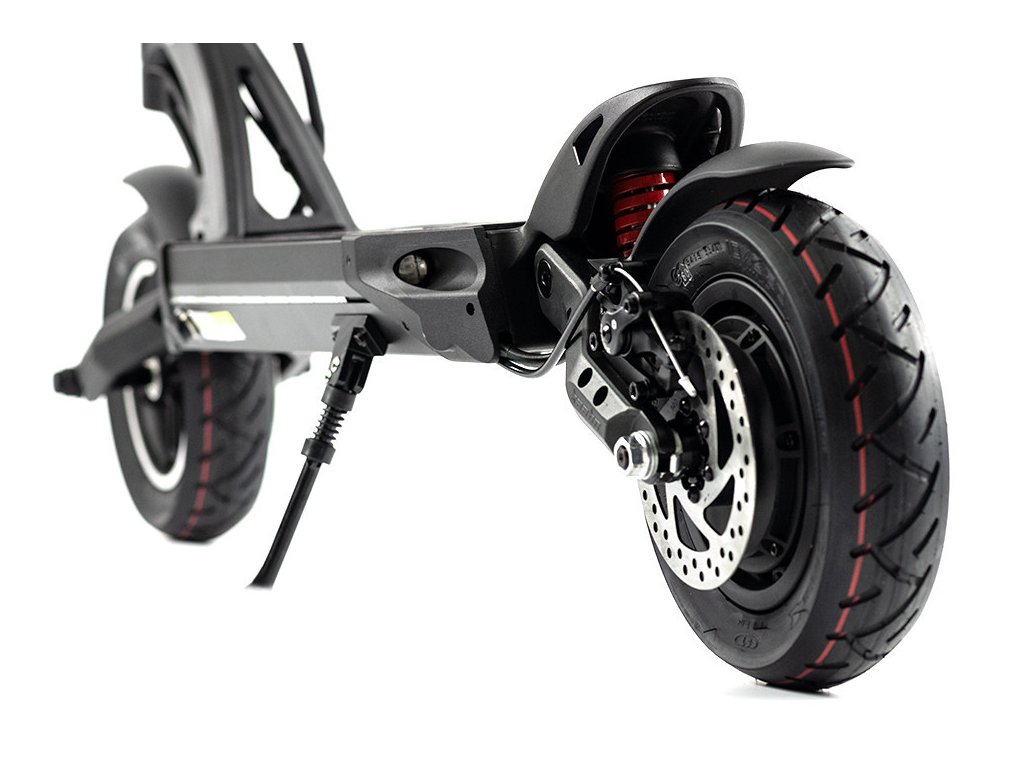 A Mantis 10 elektromos roller kettős lengéscsillapítókkal és 10"-es pneumatikus gumikkal van felszerelve, így sima és kényelmes utazást biztosít a terepviszonyoktól függetlenül. A kettős lengéscsillapítók elnyelik az ütéseket és az érdes felületeket, míg a nagy, 10 inches abroncsok fokozott stabilitást és tapadást biztosítanak. Akár városi utcákon cirkál, akár tereppályákat fedez fel, a Kaabo Mantis 10 stílusosan és kényelemmel viszi oda.