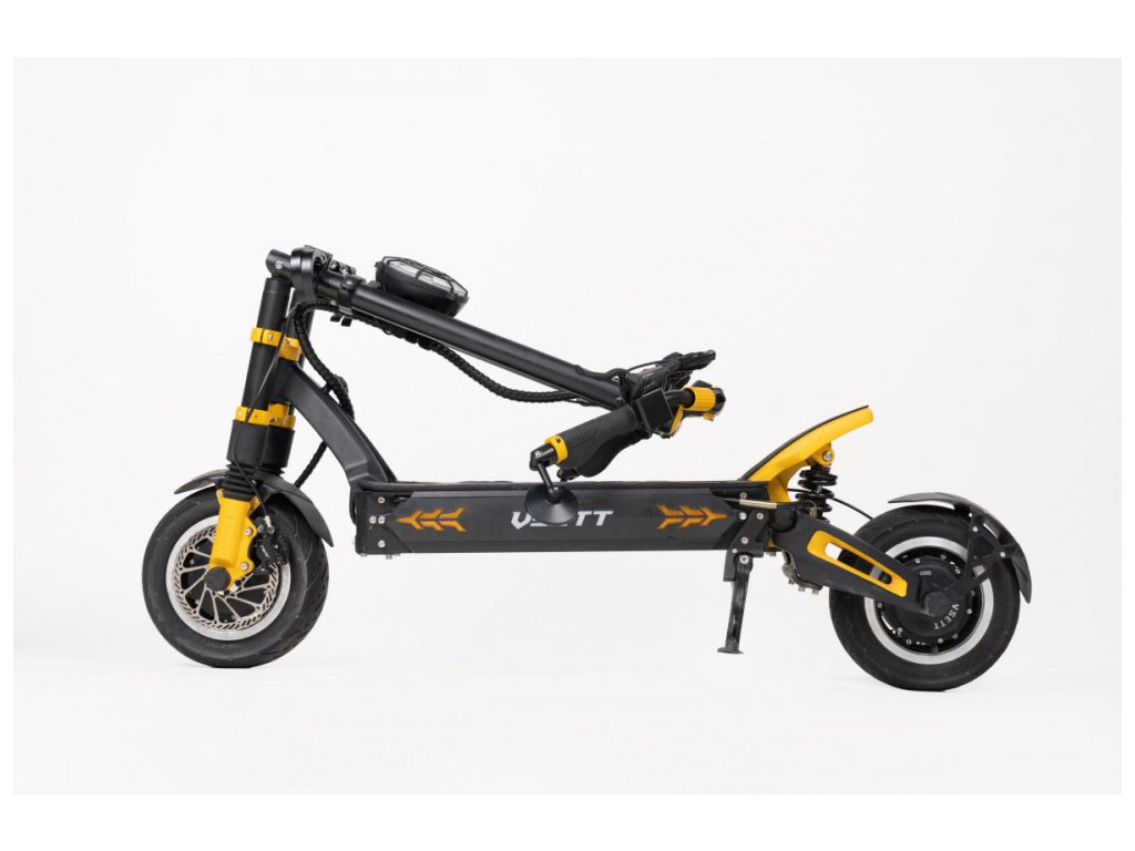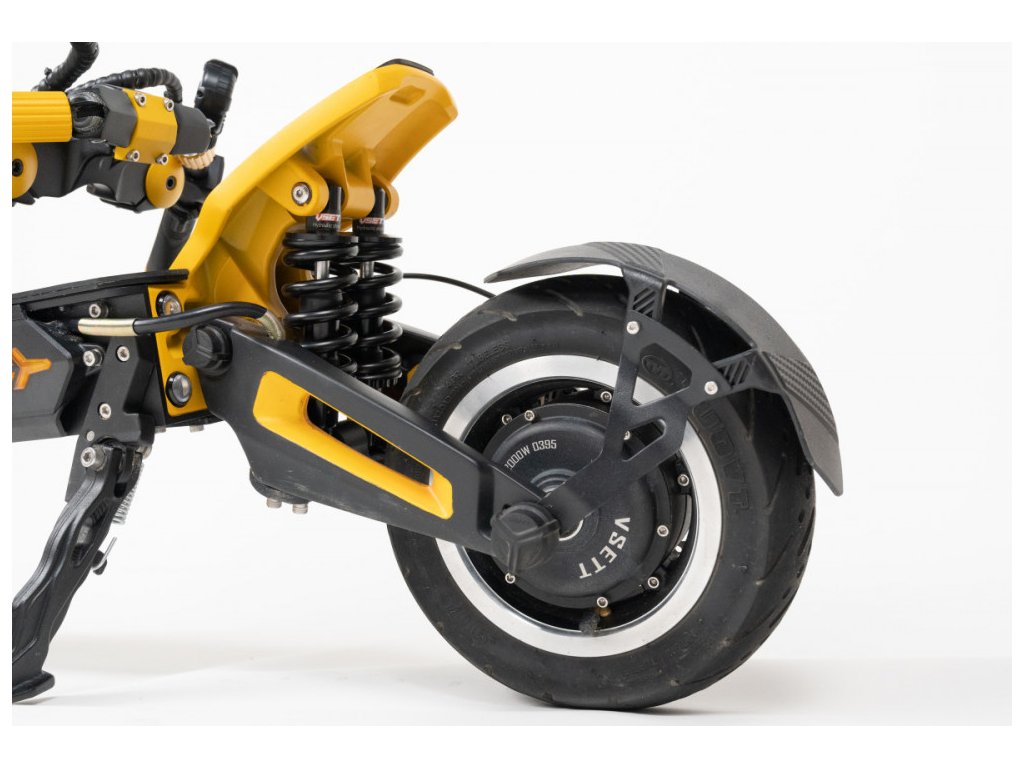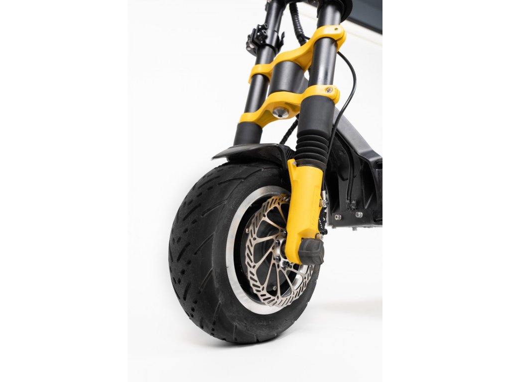 A biztonság minden motoros járműnél nagyon fontos szempont, és a VSETT 11+ Super 72V mindenre felkészült. Erőteljes dudával, hihetetlenül fényes integrált LED-es fényszóróval, valamint első és hátsó irányjelzőkkel a VSETT 11+ Super 72 mindig látható és hallható. A fékezéshez hidraulikus fékeket használ elöl és hátul.
